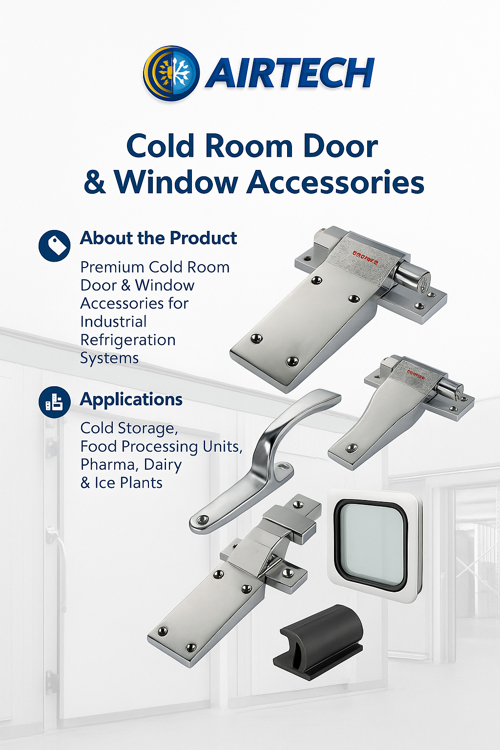 Airtech Enterprises provides a complete range of Cold Room Door & Window Accessories designed for long-lasting performance in temperature-controlled environments. Its products support efficient sealing, smooth operation, and energy-saving insulation for commercial and industrial cold rooms. With a commitment to quality and reliability, the company serves contractors, manufacturers, and cold storage facility operators across multiple industries.