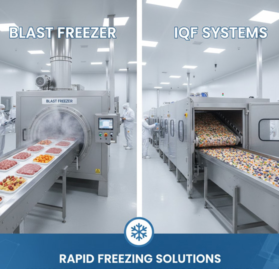 • IQF (Individual Quick Freezing) systems for food and seafood processing