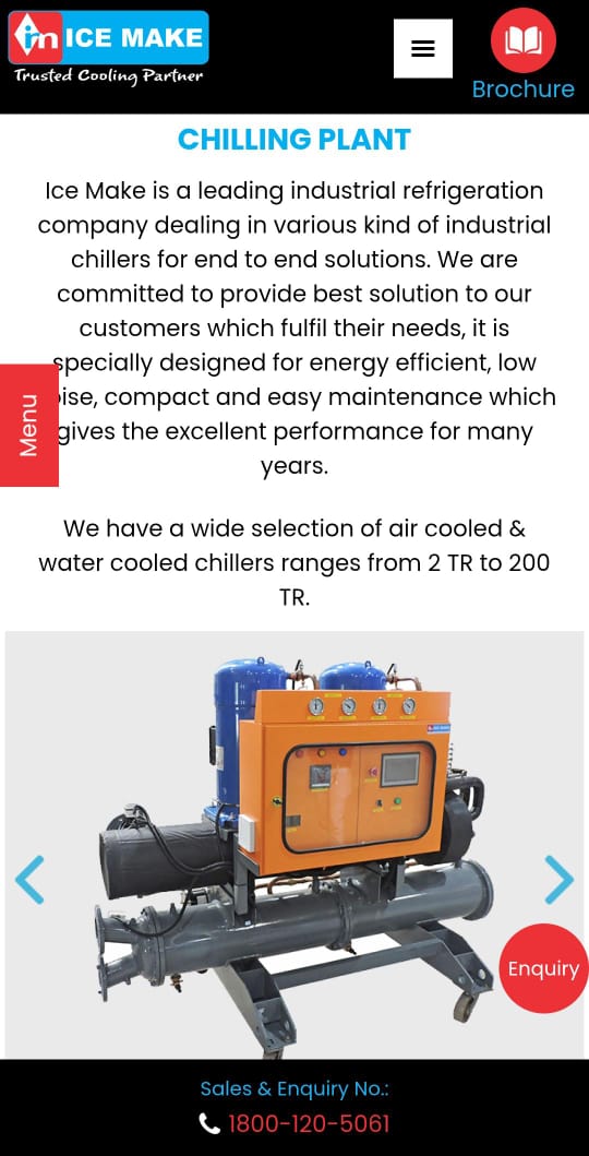 Ice Make Refrigeration Limited offers a complete range of industrial chillers engineered for precision-controlled cooling across process industries, food processing, and brine-based systems. Built with reliable compressors, intelligent control platforms, and durable construction, these chillers support continuous operation while optimizing energy and performance. Designed for both standard and custom requirements, Ice Make serves industrial clients nationwide with reliable refrigeration expertise.