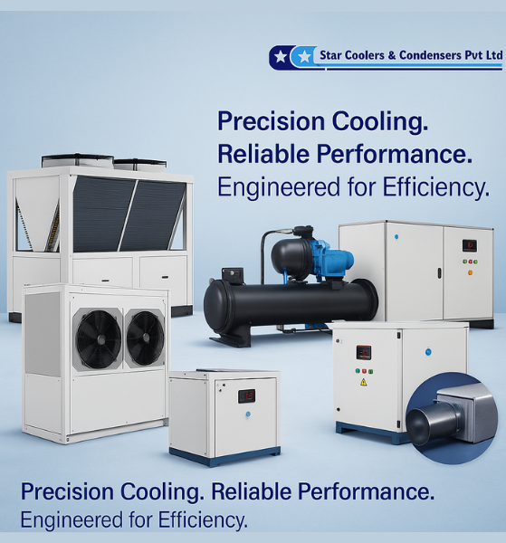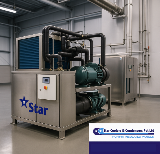 STAR COOLERS AND CONDENSERS PVT LTD provides advanced Process, Food, and Brine Chillers engineered for high accuracy and industrial reliability. Their systems support manufacturing, food processing, and low-temperature operations with dependable performance. Designed for efficiency and durability, the company delivers solutions trusted across sectors requiring stable cooling and continuous production flow.