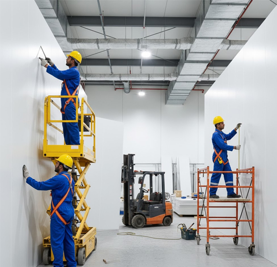 • PUF panel installation for cold rooms, clean rooms, and industrial enclosures