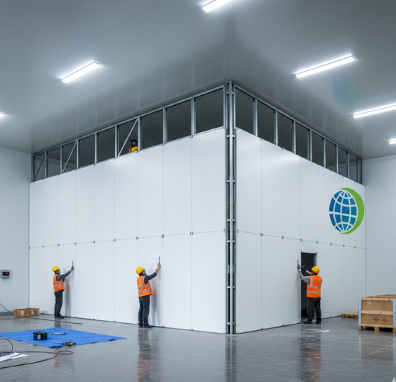 • PUF panel installation for cold rooms, warehouses, and industrial structures