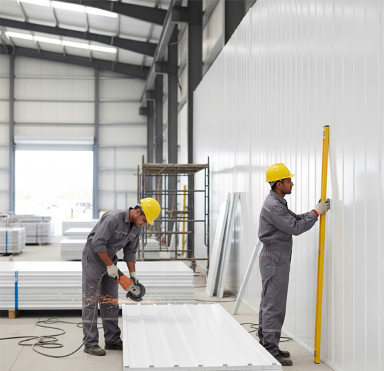 • Professional installation of PUF panels for cold rooms, warehouses, and industrial structures