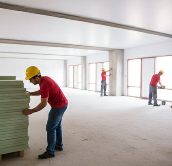 • Insulation sealing, joint finishing, and door installation