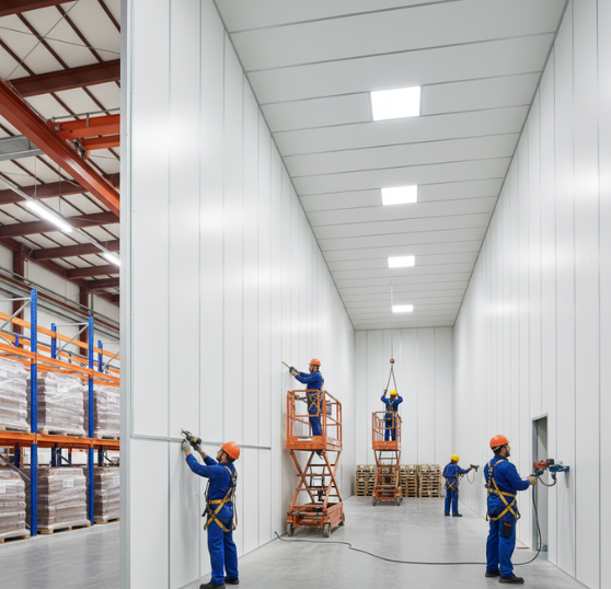 • PUF panel installation for cold rooms, warehouses, and industrial enclosures