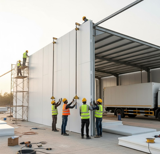 • PUF panel installation for cold rooms, clean rooms, and industrial facilities