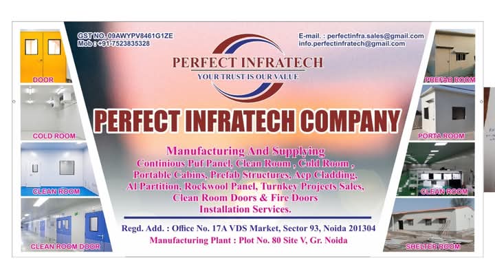 Perfect Infratech Company Pvt Ltd is a specialist manufacturer of high-performance insulated building solutions headquartered in Noida, India, with several years of industry experience. Focusing primarily on polyurethane foam (PUF) sandwich panels, clean-room panels, cold storage doors and portable cabins, the company serves sectors including industrial, commercial, pharmaceutical and logistics facilities with quality and technical precision.